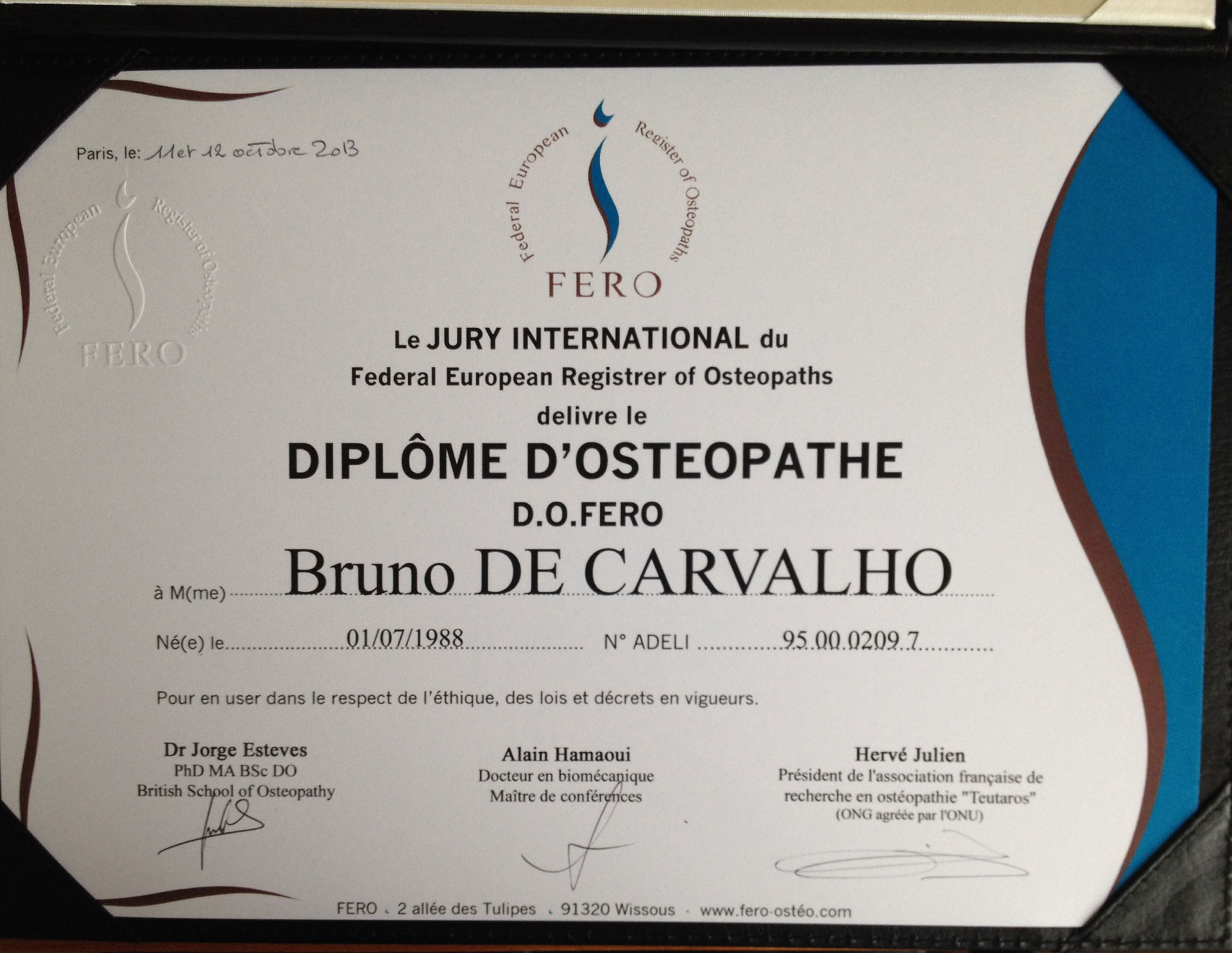 Diplômé de l'Institut Dauphine d'Ostéopathie à Paris, école agrée par le Ministère de la Santé, j'y ai effectué ma formation en 5 ans.
